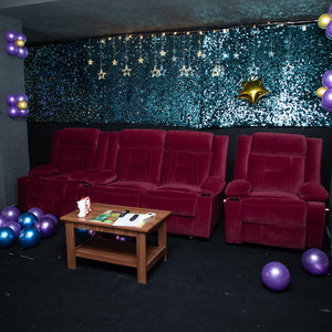 Celebrate in style at our private mini theater, designed for 2 to 20 guests — complete with stunning themed décor, exclusive movie screenings, customized cakes, delicious food, and luxury add-ons like fog entry, professional photography, and live music.